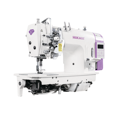Direct drive micro oil computerized high speed 2-needle split needle bar lockstitch machine with improved trimmer, reverse stitching, thread wiper, with automatic presser foot lift (AK)